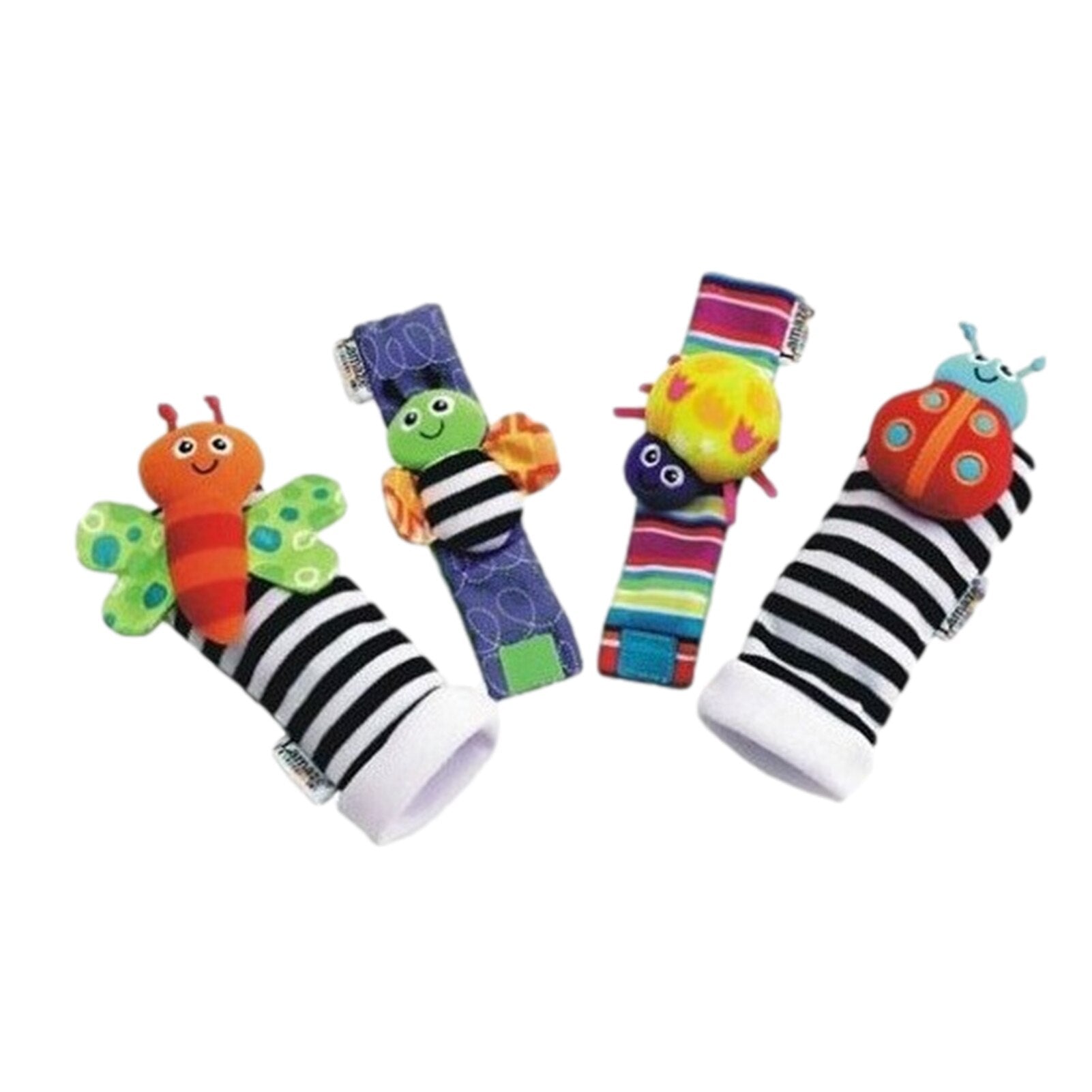 4pcs Cartoon Newborn Baby Rattle Bell Socks